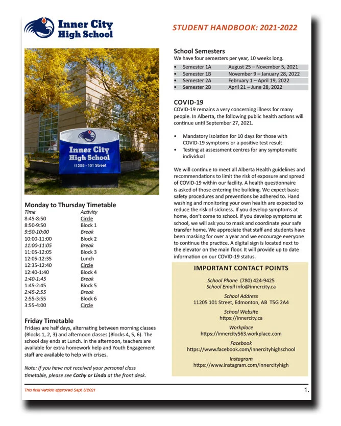 Student Handbook Inner City Youth Edmonton